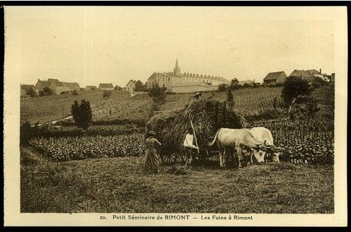 Le petit séminaire de Rimont a formé des générations de futurs prêtres, accueillant jusqu’à 200 internes et une vingtaine de professeurs. Il comprenait cuisines, vaste réfectoire, 7 dortoirs de 30 lits, un laboratoire de physique-chimie, trois grandes salles d’études et une grande chapelle néo-gothique. De l’aménagement initial de la grande chapelle, seuls les 24 vitraux (du XIXème siècle de Claudius Lavergne) sont conservés. Ils représentent des scènes de l’Ancien et du Nouveau Testament et de la vie des saints. Le petit séminaire ferme en 1978.